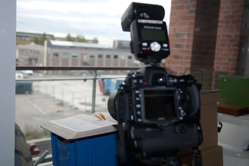 The Mickey Finns and the book were placed in front of a window and fill light was provided by an flash mounted on the camera