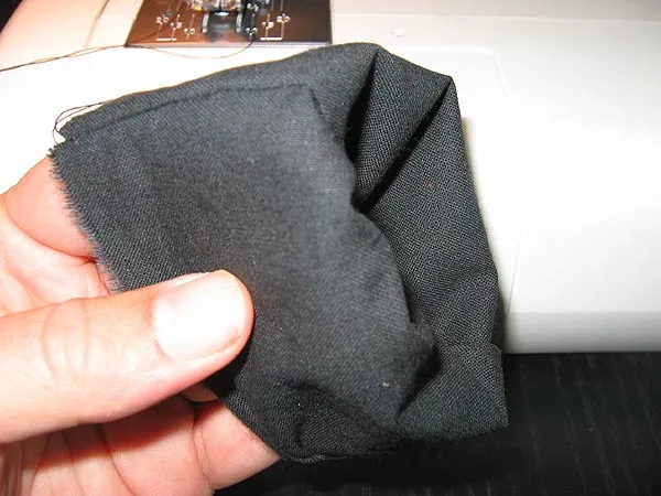 When you have sewn on the end cap, you are ready to turn the fabric tube inside out.,