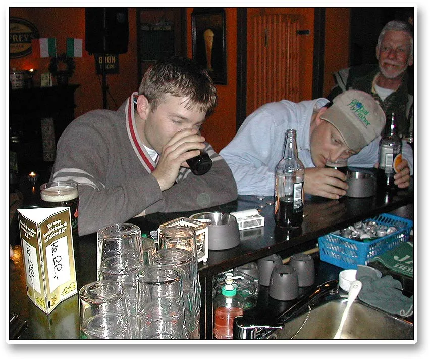 Sean and Steve doing their best to empty an Irish bar of Brown Ale before the ferry left at midnigyht.