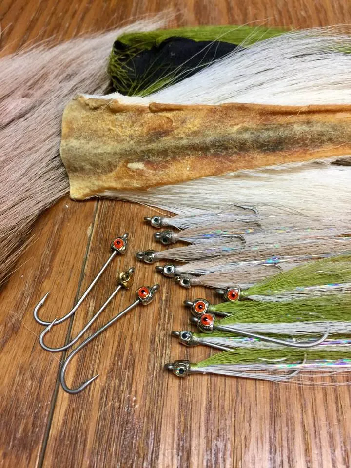 Jiggies tied by the originator, Bob Popovics, on quite long hooks.