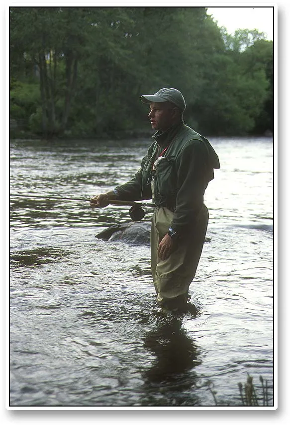 Ken fishing pool 17 late one evening. This pool can also be quite productive. It is the first calm stretch above Kungsfossen and fish will often be resting here after the ordeal.