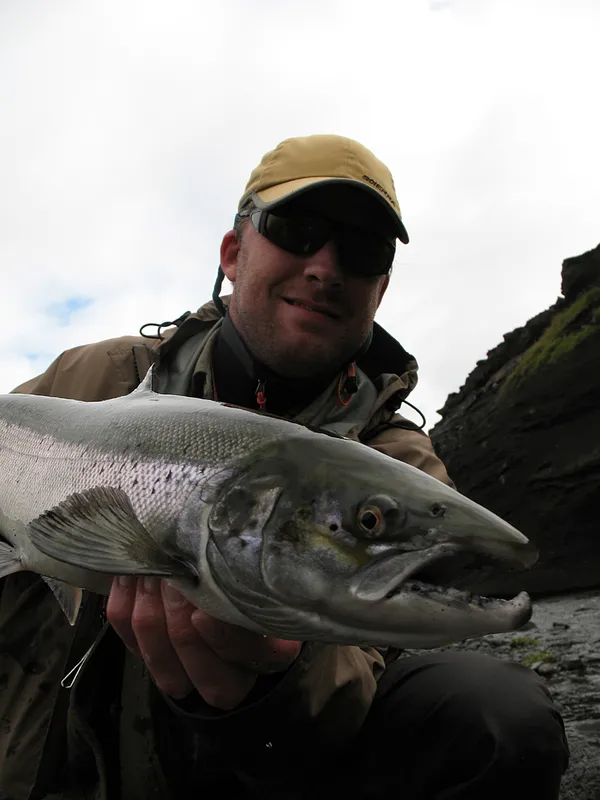 When the males have been in the river for a few days they start darkening and developing a kype and larger teeth.