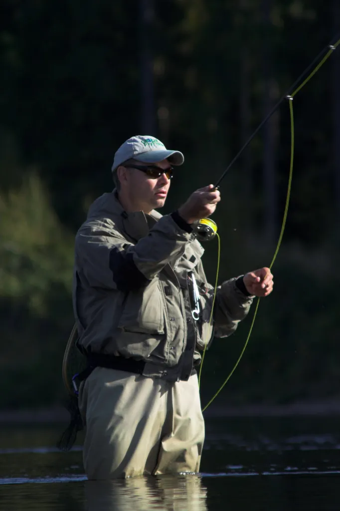 The fly line is loose in the water when it's not outside the rod, and the loose line is drawn through the rod guides by the weight of the line in the air
