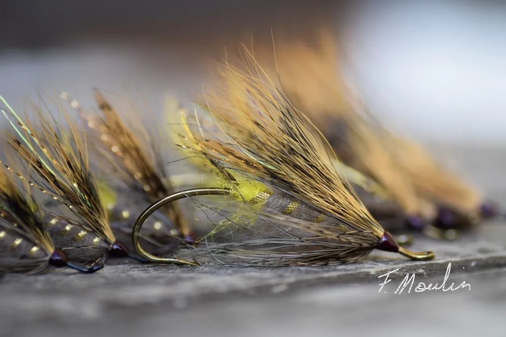 Salmon flies inspired by the March Brown, tied by Fabien Moulin