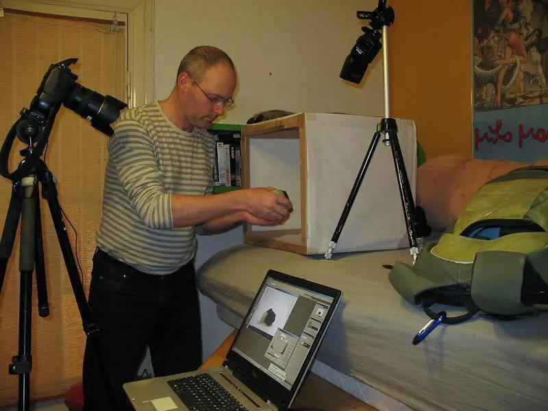 A simple light box on my bed and a couple of flashes - the surroundings and the simplicity can't be seen on the finished pictures.