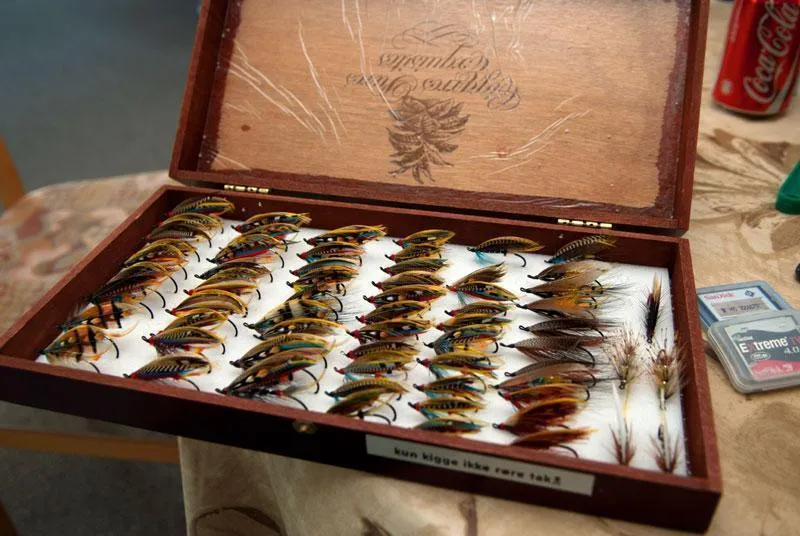 As always, impeccable and impressing. A whole box full of full dressed salmon flies - for fishing! All tied by Niels Have.