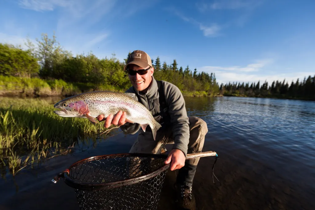 Matt McCormick showing off a Nushagak River Rainbow before releasing