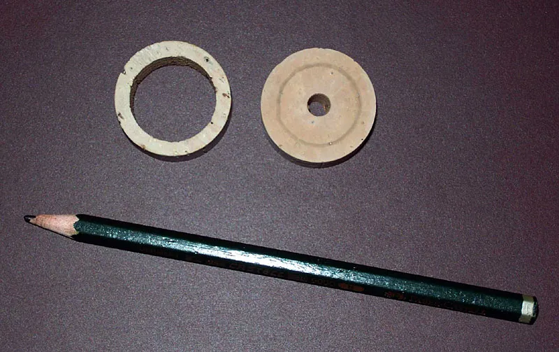 The quality of the cork ring delivered with the reel seet did not meet my standards. So I made my own recessed ring. Use teh original one as a sample to place a pencil drawing on the one you will build to see how far you have to work.