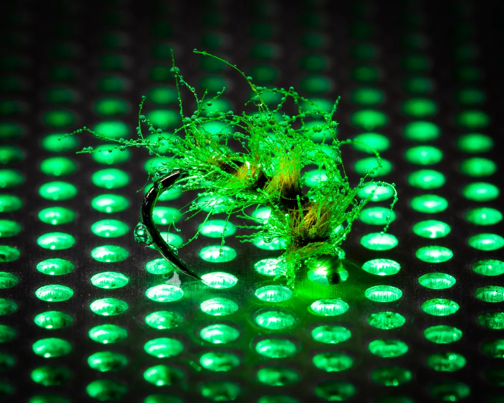 Olive dubbing and olive shaded ribbon