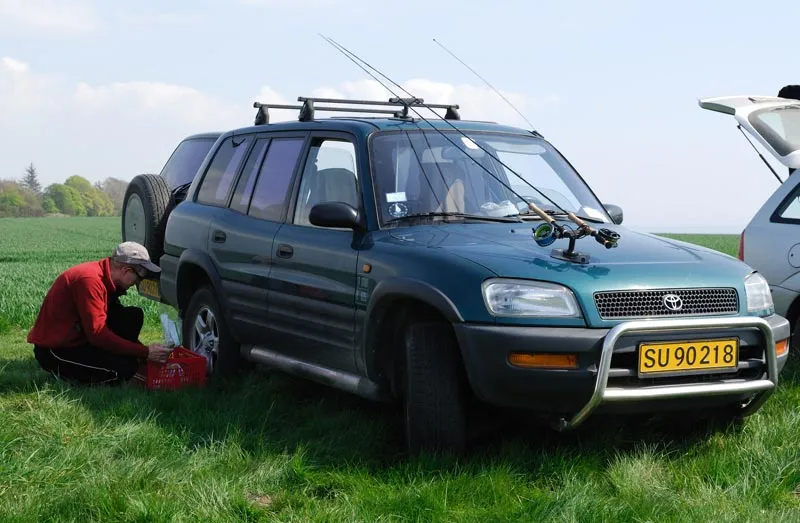 The principle is one part on the bonnet and one on the roof, and the rods mounted tips pointing backwards