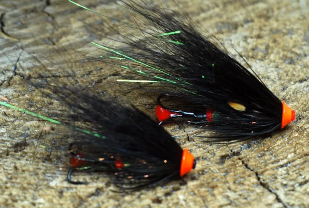 A couple of Overtakers - a universal small black fly with a hot tag and a hot cone. Tied by Ken Bonde Larsen.