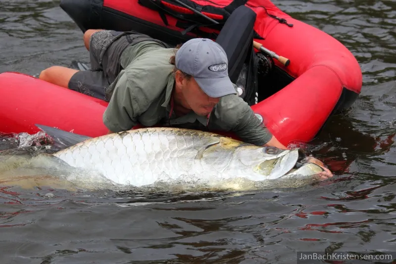 The size of this large fish is quite intmidating compared to the angler and his vessel
