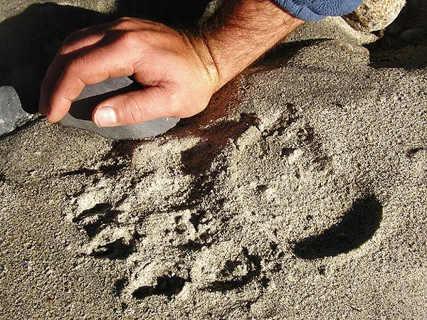 This track is probably just from a "small" black bear and not a grizzly. We saw plenty fresh tracks of both bear, wolf and moose but no trace of the animals during our trip.