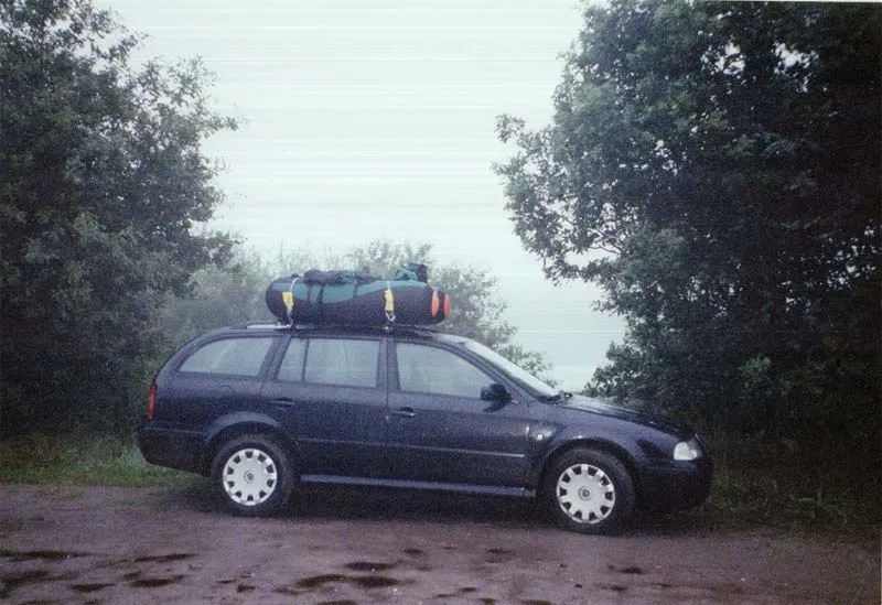 With a few straps I'm able to mount my pontoonboat at the roof of my car.