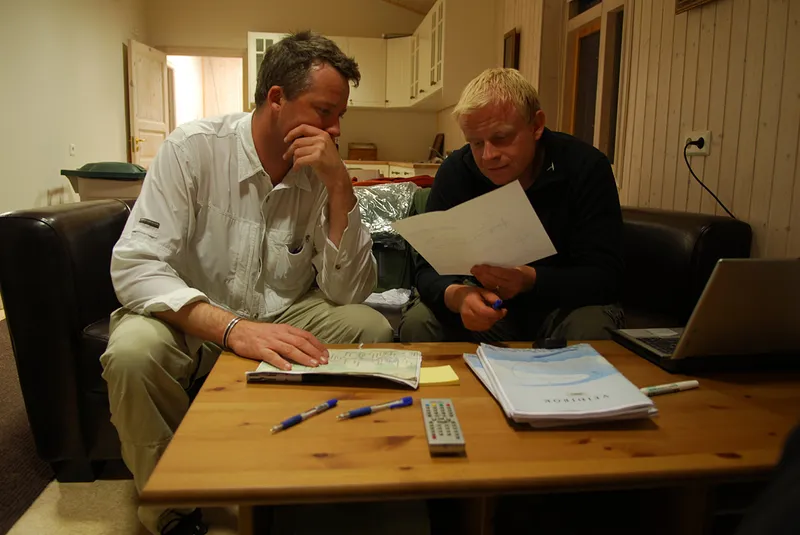 Nils and Jóhannes studying the map of the Ytri Rangá