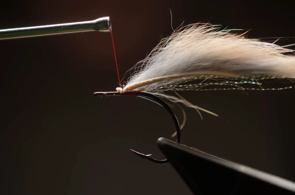 Pulling the thread upwards to secure a material, will make it easier to keep it from rolling on the hook shank.