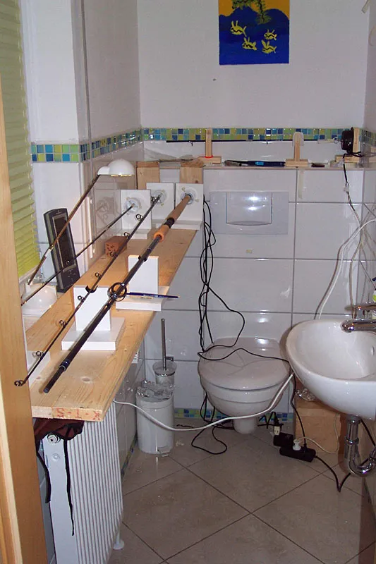 Note the Thermo/Hygrometer to keep track of optimal working conditions for the coating (visible on the left side of the picture)