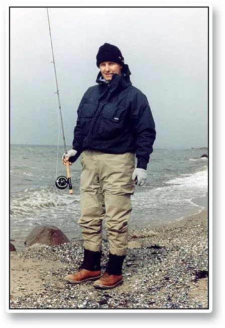 Slovenian Tomaz Modic ready to fight the wet, cold and rainy Danish elements - and the sea trout.