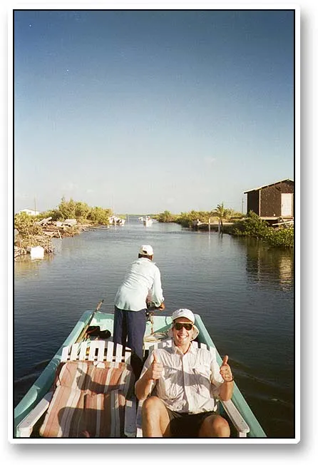 More than ready to go, Kristian happily signals OK to Joachim while Ramon backs the boat out of the canal behind our resort where we were picked up early every morning.