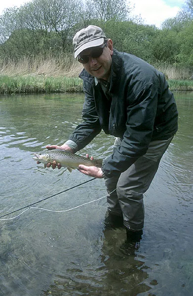 Paul is ready to let a Test brown trout return the the clear water.