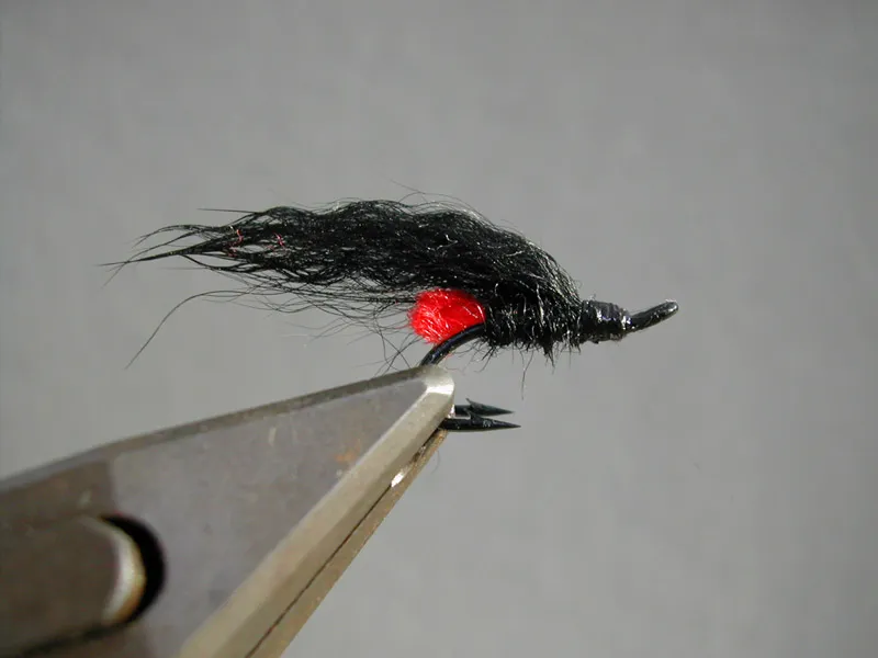 A mini version of a generic pattern that must have caught salmon on all the northern hemisphere. This one is tied on a small size 10 double salmon hook and has a fairly long wing to compensate for its tiny size.