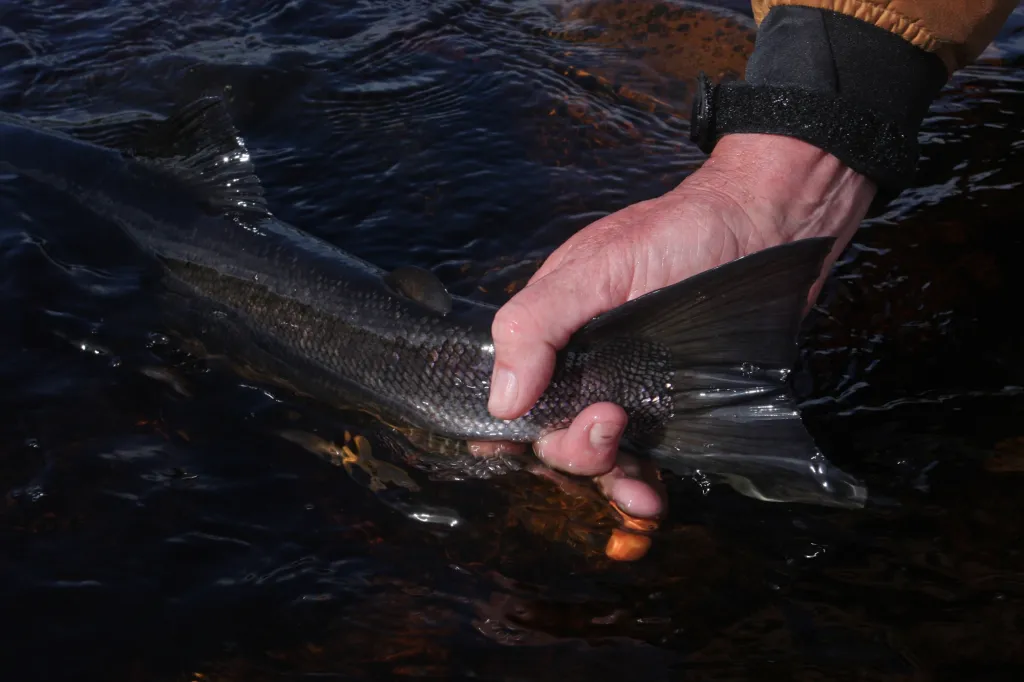 Releasing an Irish salmon