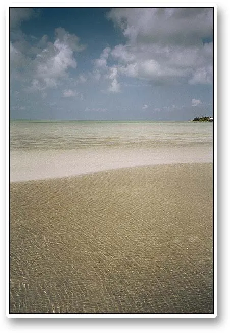 The clear water slightly riffled by the wind over a very beautiful sandy spot in Ambergris Caye