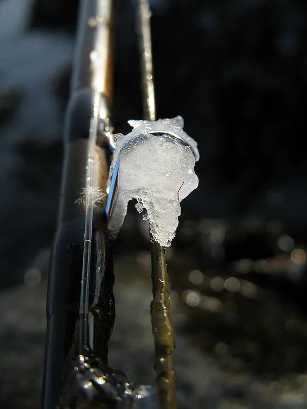 This iced guide on a rod a winter's day tells a story. And thanks to the macro setting it's in focus.