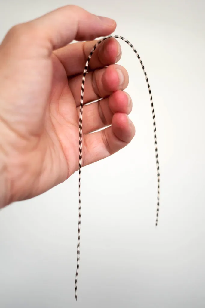 A single feather from a grade 1 grizzly saddle from Whiting Farms, and not even one of the longest ones! This feather will deliver hackle for 4-5-6 flies and is completely uniform in its full length, in this case suitable for about a size 14-16 hook.