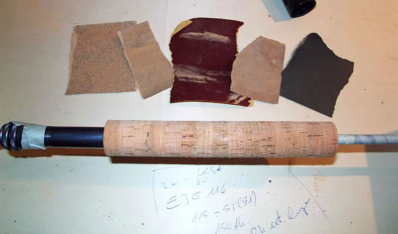 Sand paper in different grits: 60, 100, 150, 220, 400 (from left to right)