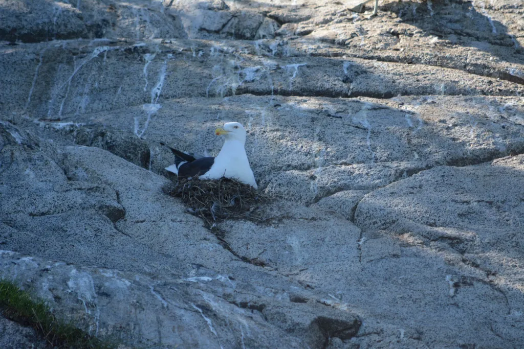 Seagull nesting on one of the islands in Pulmarí lake