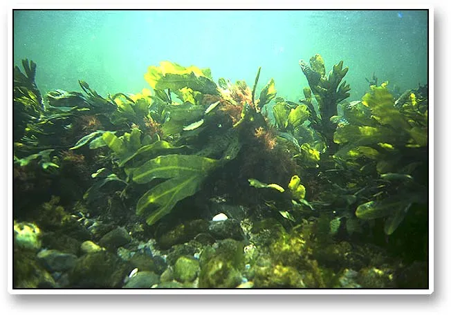 Dense forrests of low seaweed are commom in the Danish oceans. The typical height is about 50 centimeters or 1-1ý'