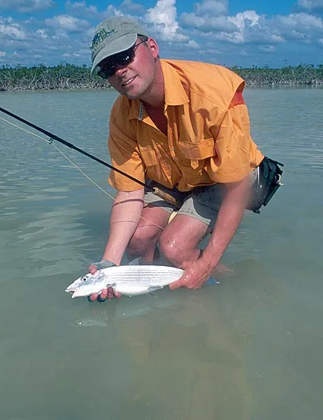 The sunglasses may make me look like Robocop, but they are an important part of a bonefish angler's gear.