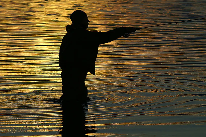 Standing a little higher than usual I could isolate this fisherman against the reflections of the sunset in the water and get a good profile of him.