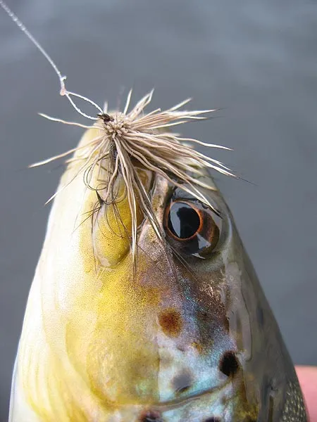 The mountain lake fish loved the fast, skating caddis on the windswept surface.