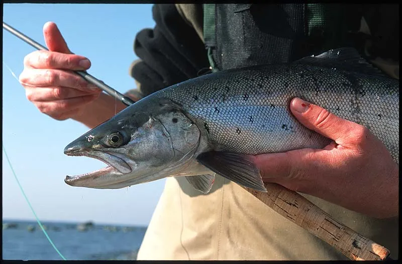 This slim but nicely silvery trout could actually very well be a salmon, which are regularly met on the coast around Denmark.