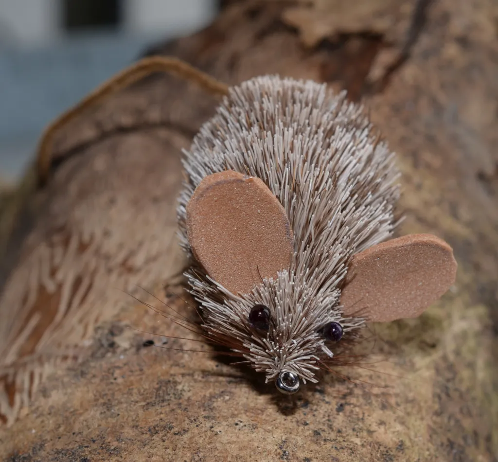 This deer hair mouse with whiskers and black eyes is a very lifelike imitation of a real mouse