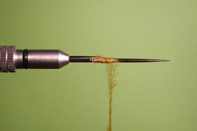 Starting the body is a question of catching long haired material in the small needle on the tool and start winding.