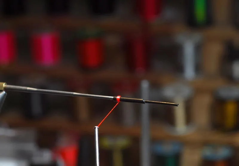 Start with a short black tube with inner tube. Create a short tag with orange tying thread