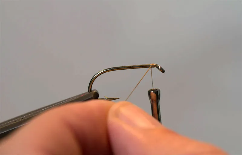 Start the thread behind the hook eye