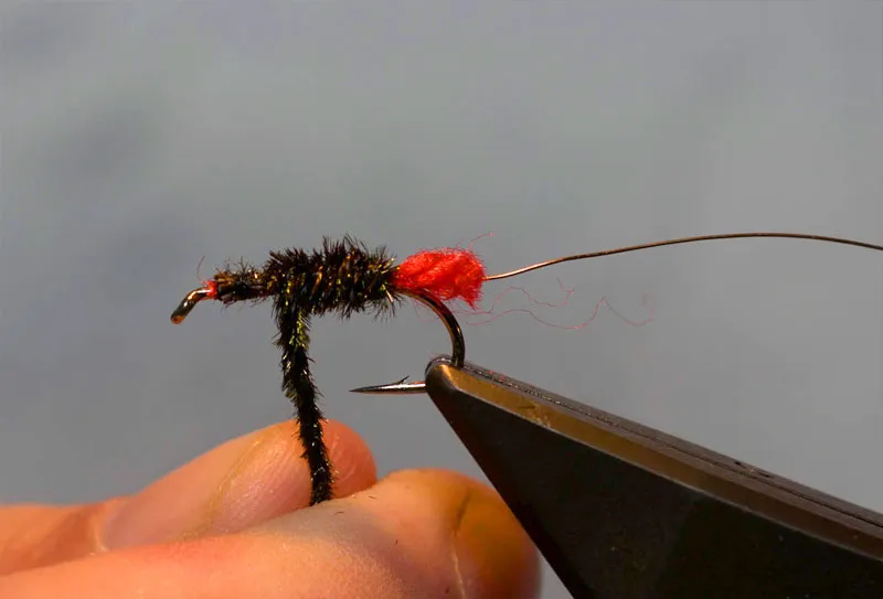Wind the herl rope forwards in touching turns. Let it twist further to reinforce it.