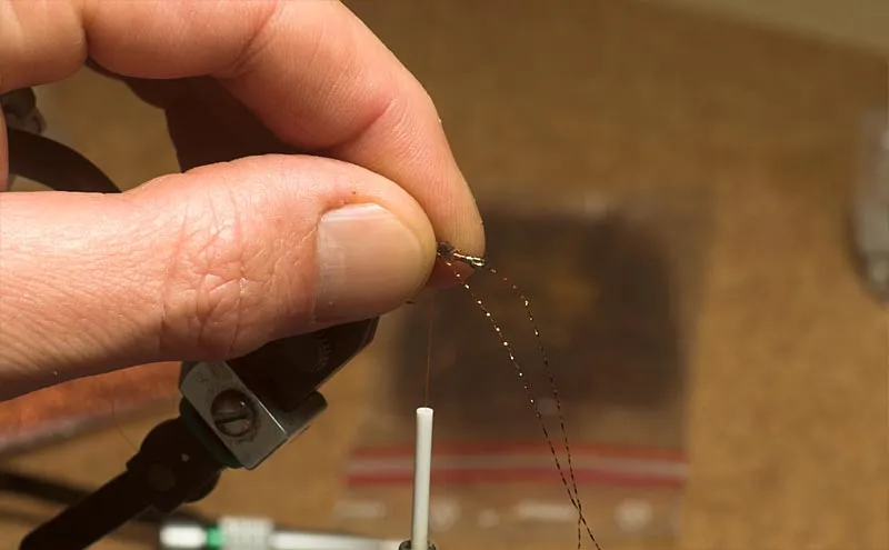 Tie in a couple of straws of twinkle flash centrally on one side of the tail