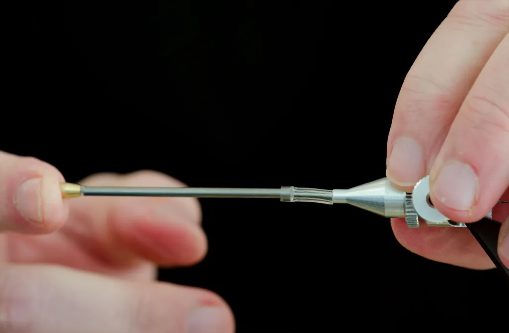 Tighten the collar to lock the tube in place before tying