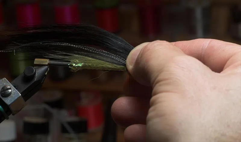 Measure the second wing section. Remove all underfur from a slim bunch of goat hair. The second section is longer than the first