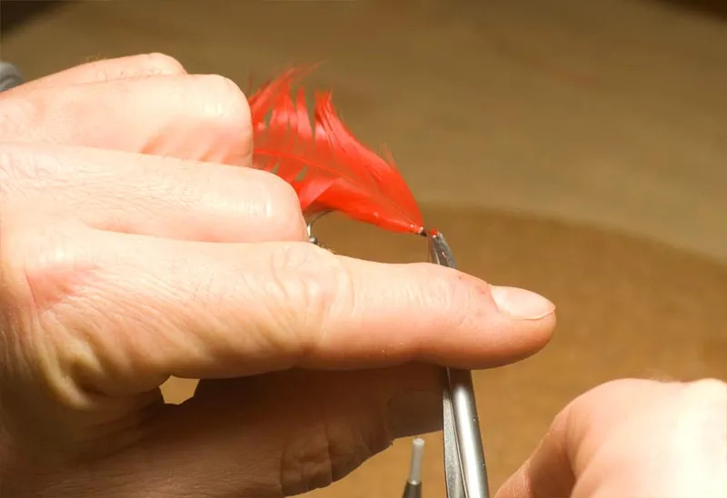 If there are any feather stubs, trim the away now to keep the bulk under the head down