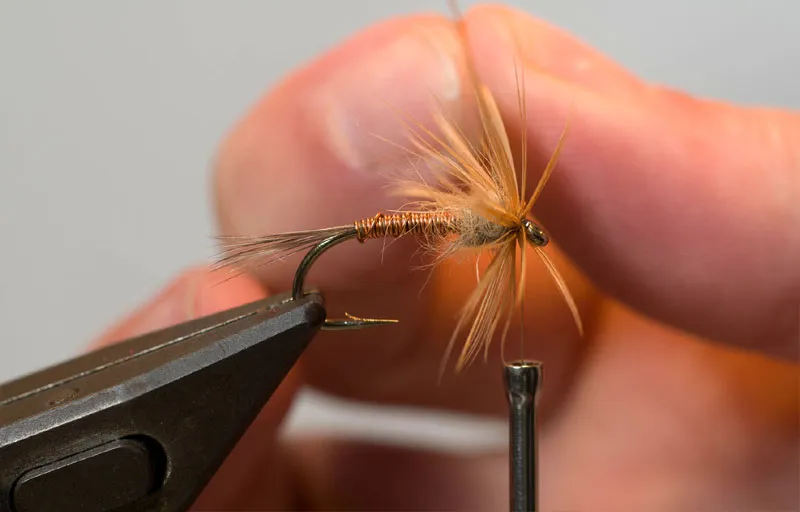Wind the feather in 3-4 close turns in front of each other making sure the fibers aren't crushed