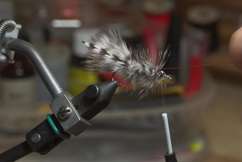 Catch the hackle tip with the rib, and rib in the opposite direction to secure the feather