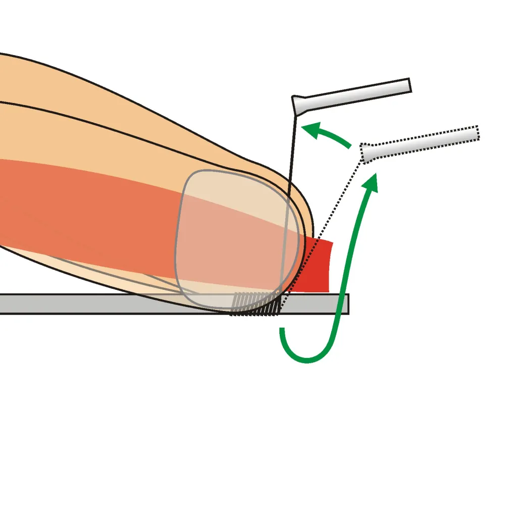 Take a tight wrap under the hook shank, bringing the thread forward at an angle, and then tip it back in between your fingers, catching it between your thumb and the material.