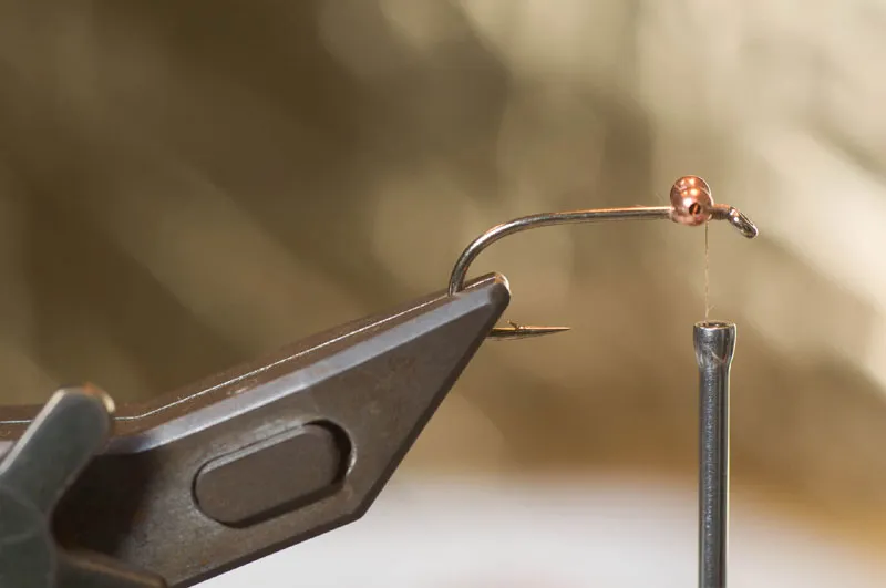 Tie in the eyes on top of the hook shank. I'm a little too close to the hook eye here...
