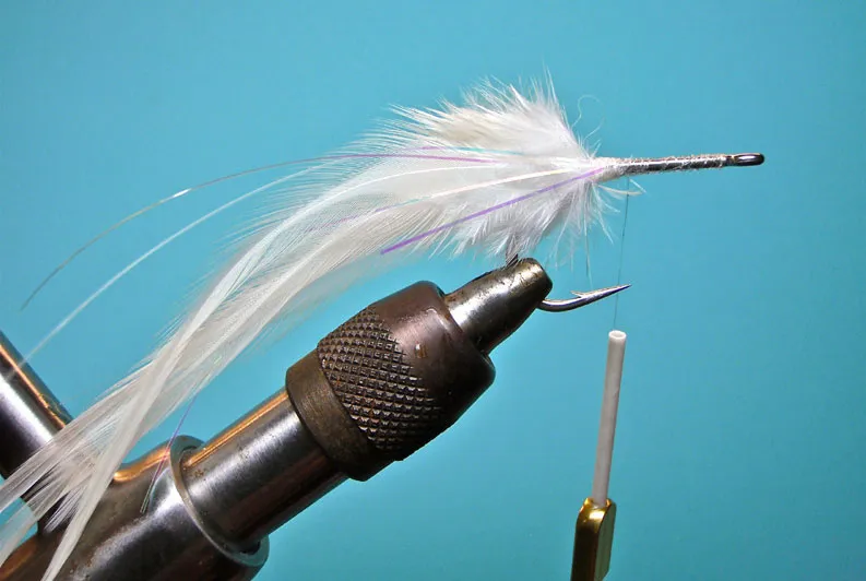 Tie in the tail consisting of hackle feathers and a bit of flash
